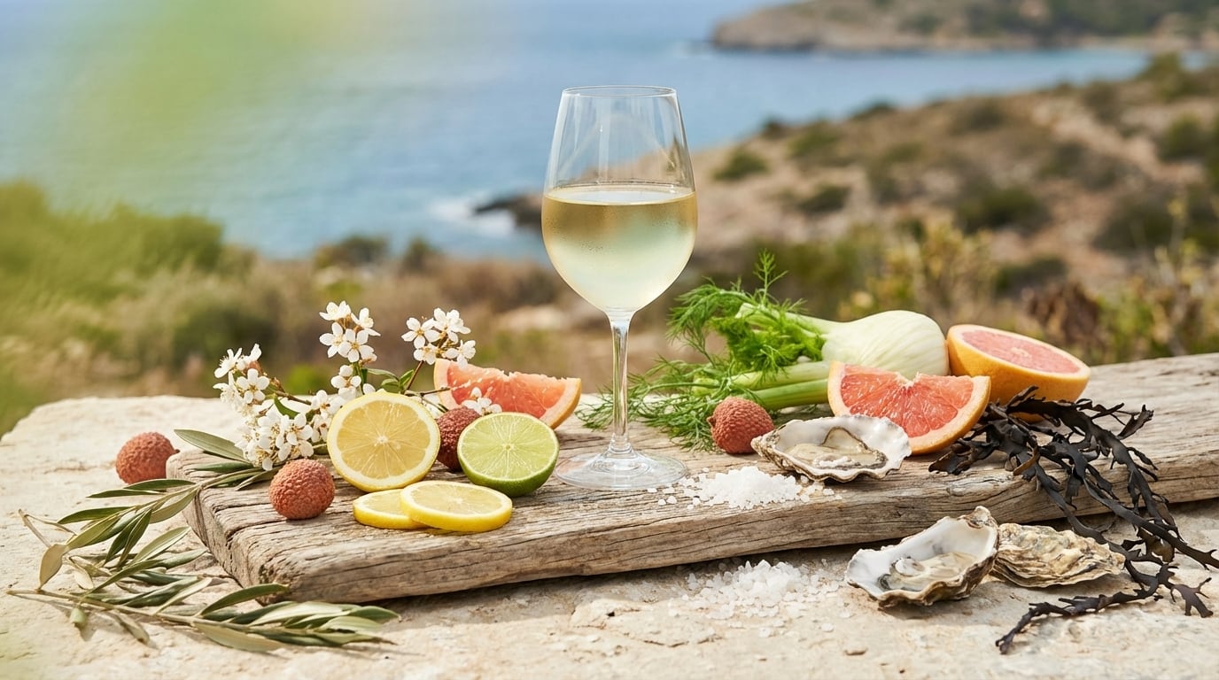 ■ 産地・テロワールの特色 地中海の潮風と、古代の貝殻が堆積した特殊な土壌。この環境こそが、他のどの品種にも真似できない「天然の塩気」と「鮮烈な酸」をピクプールに与えます。