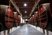 【伝統的酸化熟成:大樽が育む琥珀の調和】 セラーの外に並ぶ数千個のガラス製瓶(ボンボンヌ)で太陽と風にさらすことで、ワインに極上のカカオやナッツを思わせる「ランシオ香」が宿ります。その後の長い大樽熟成が、味わいに驚くほどの滑らかさと一体感をもたらします。